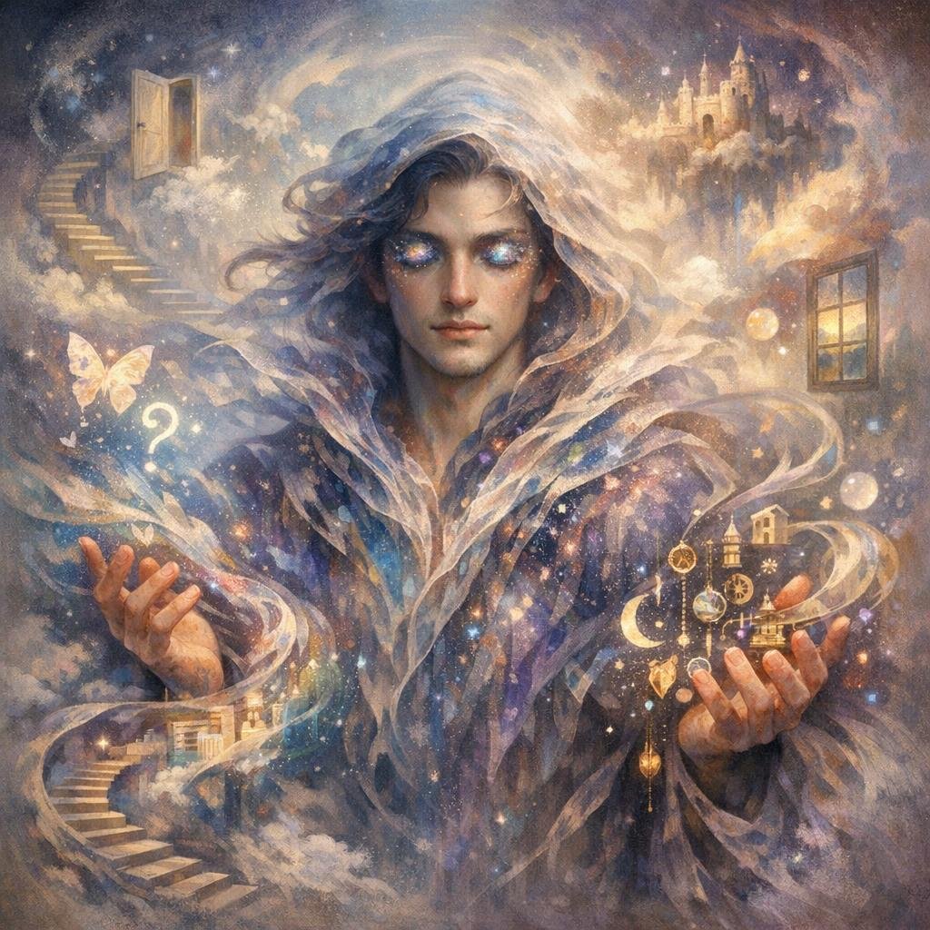OneirosThe Waker arrives with the scent of deadlines and cold porcelain, clutching a briefcase full of static. But the Atrium is alive; its ribs pulse with the slow rhythm of a memory finally finding its shape. Here, on a floor of liquid mercury that mirrors a storm you haven't lived yet, you face the version of yourself that has never been edited.